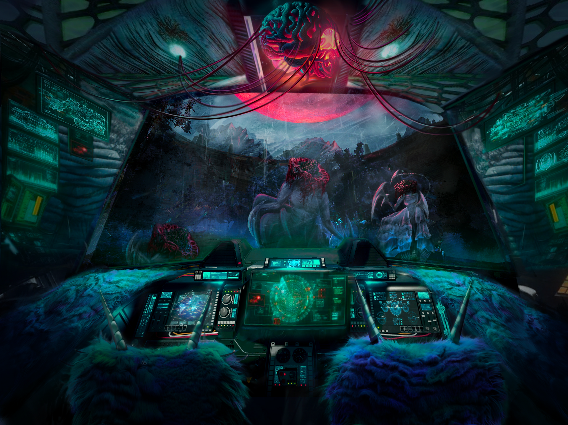 Each interactive battle station is themed to the creature or the mech. A curved 3D visual screen is in front of the guests to further immersive them in the environment and the battle.